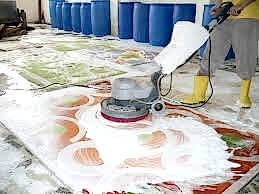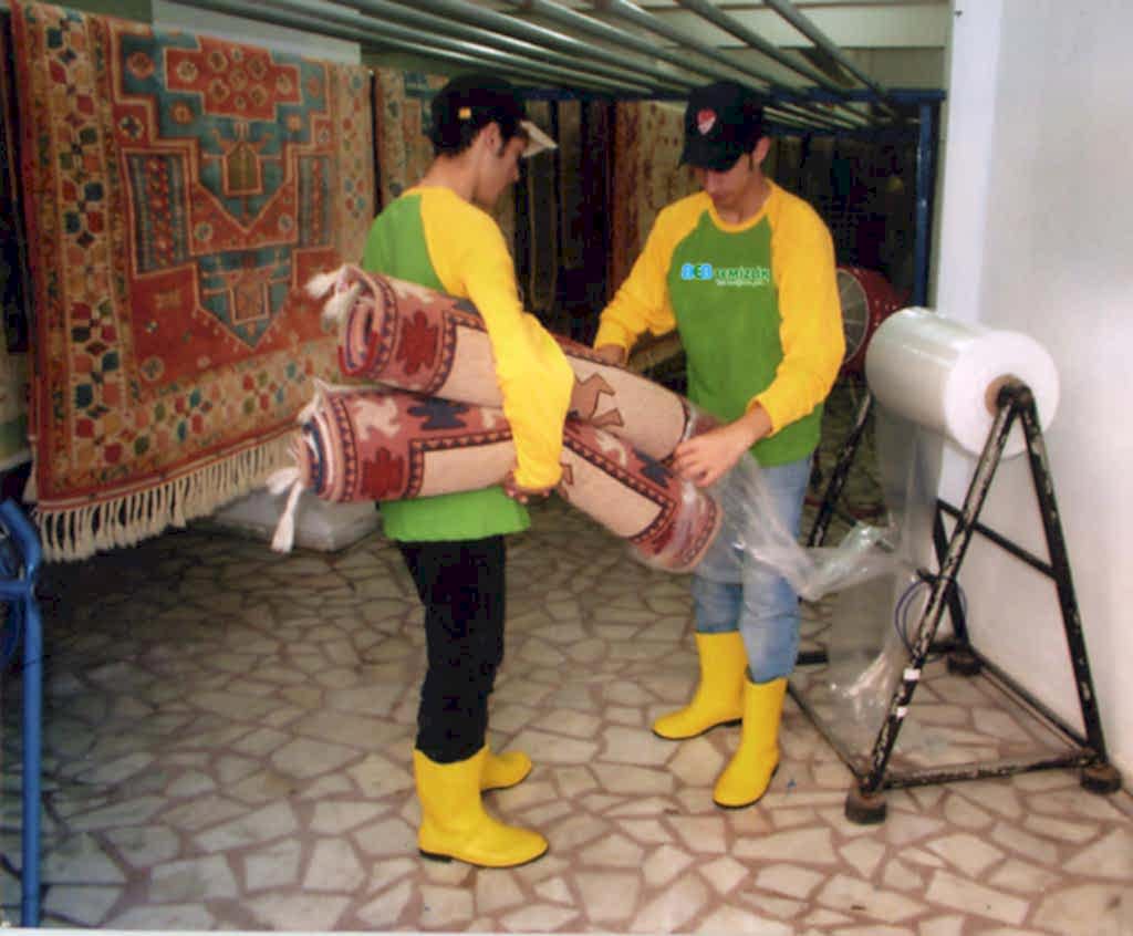 Dezenfekte edilen halılar otomatik makinalarda yıkamaya girmeden önce halı üzerindeki çıkması zor olan lekelere özel ilaçlarla lokal işlem uygulanmaktadır.